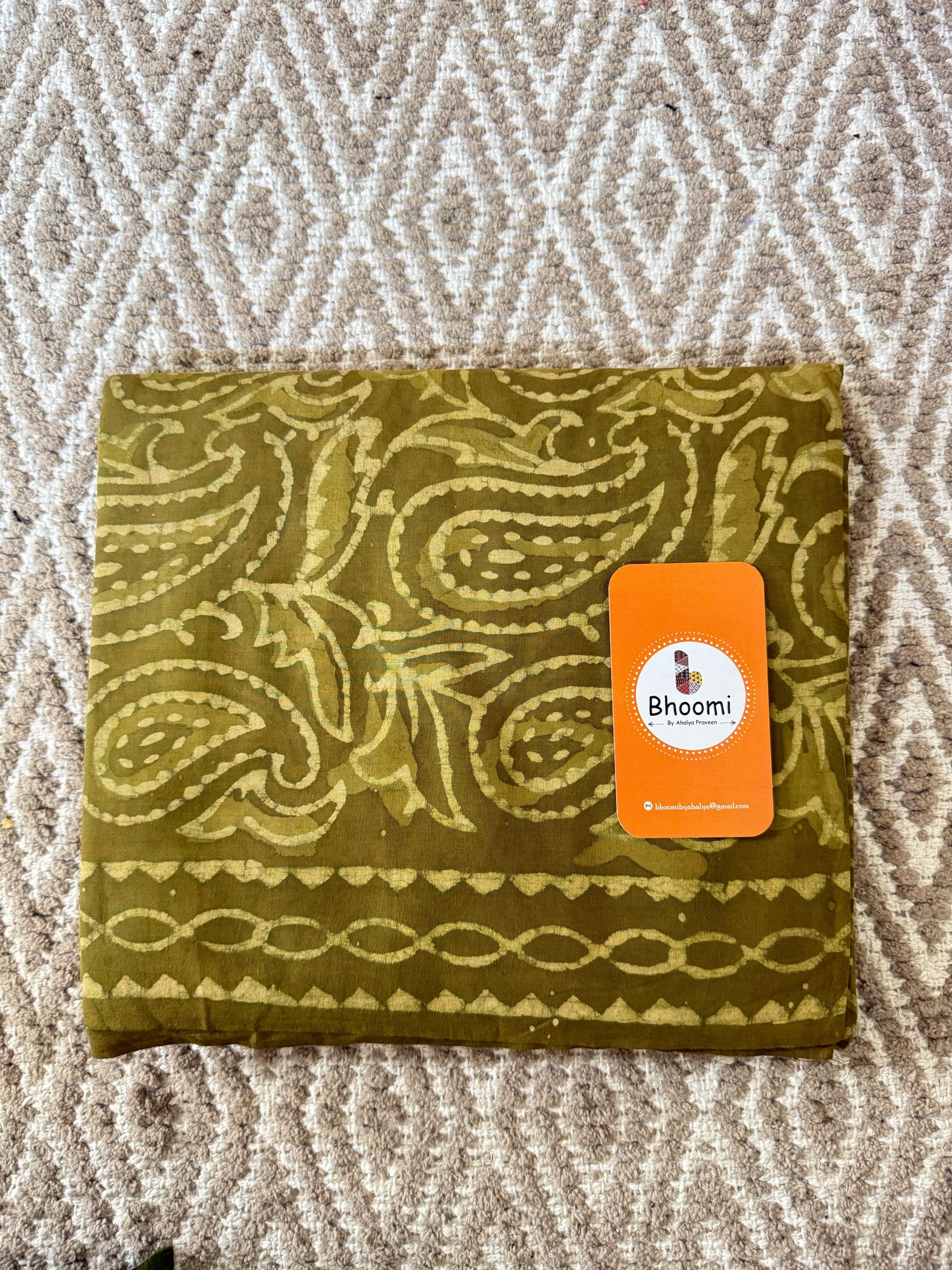 Fabric comes with hand block print using natural dye, though efforts have been made to avoid any defects, there might be slight imperfections in the pattern and colours are common in these sarees.
