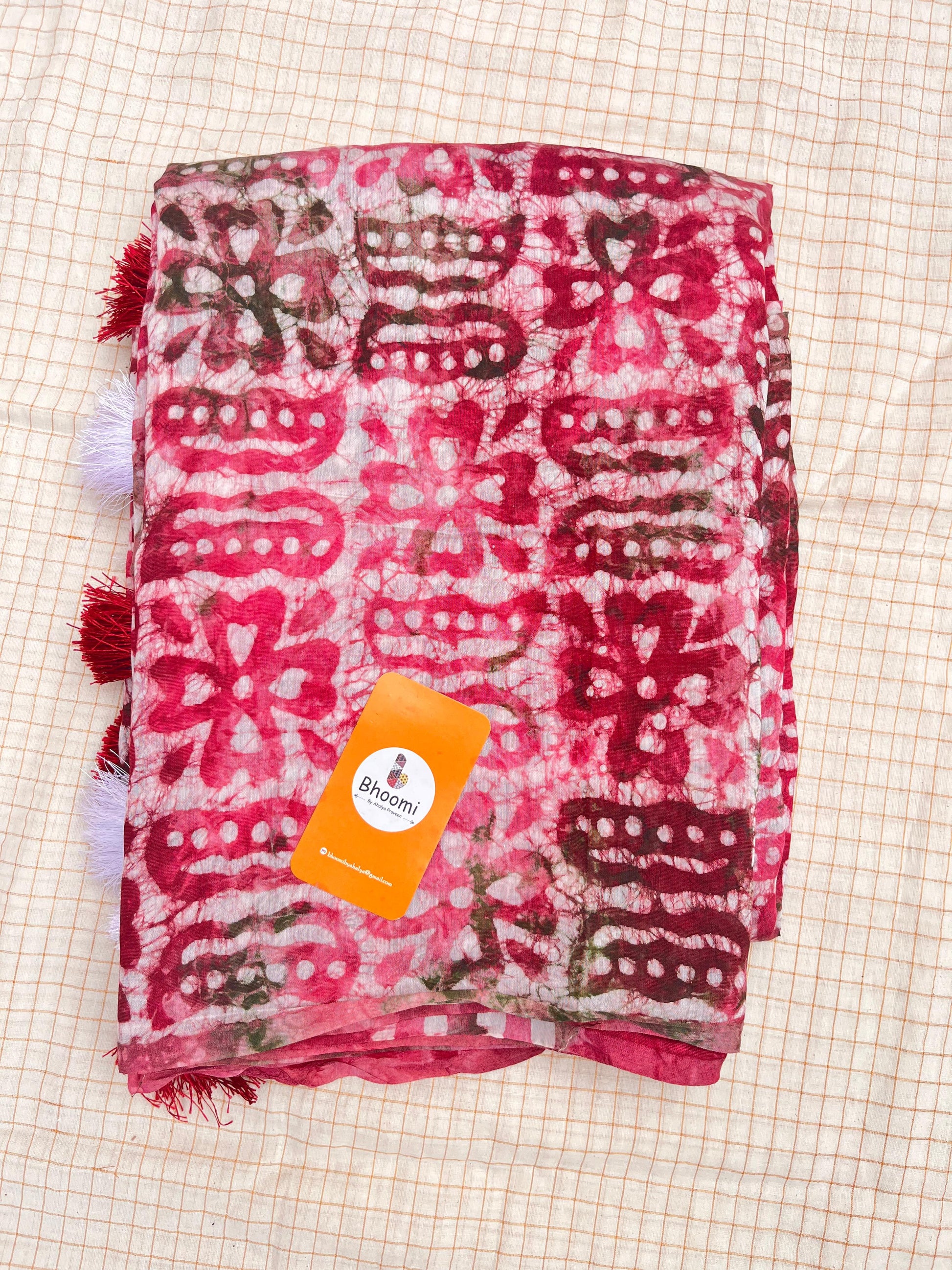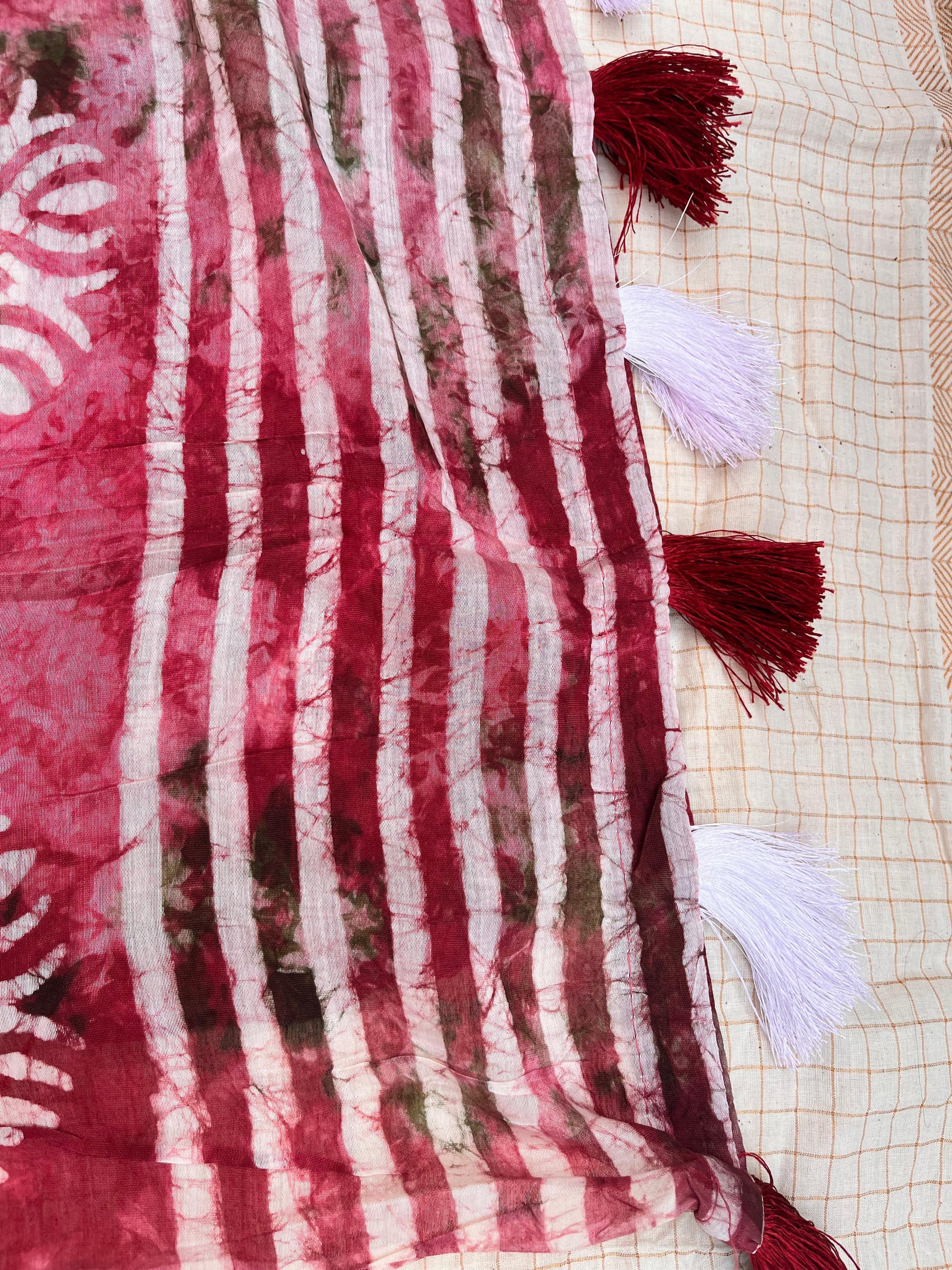 Soft chanderi cotton saree with spray style dying and hand-block prints.