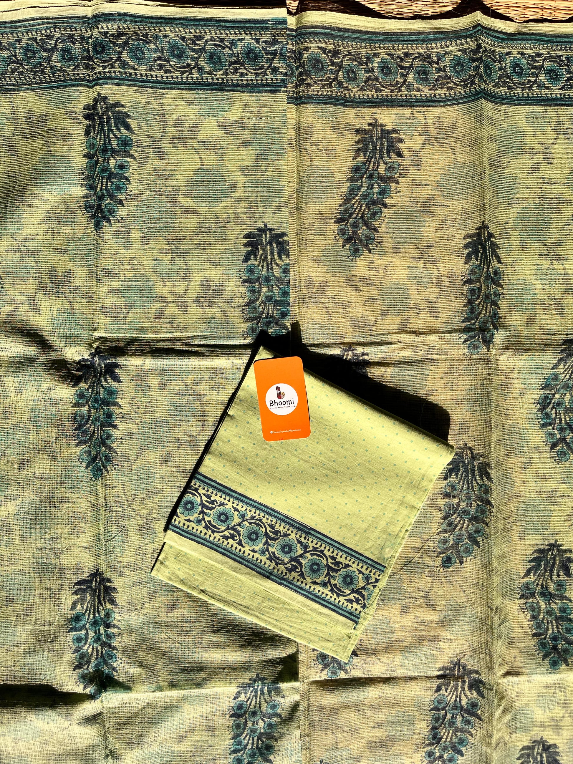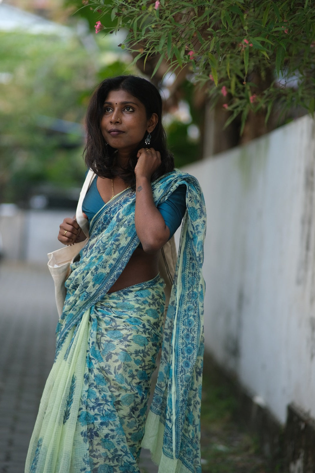 Sarees comes with hand block print using natural dye, though efforts have been made to avoid any defects, there might be slight imperfections in the pattern and colours are common in these sarees.