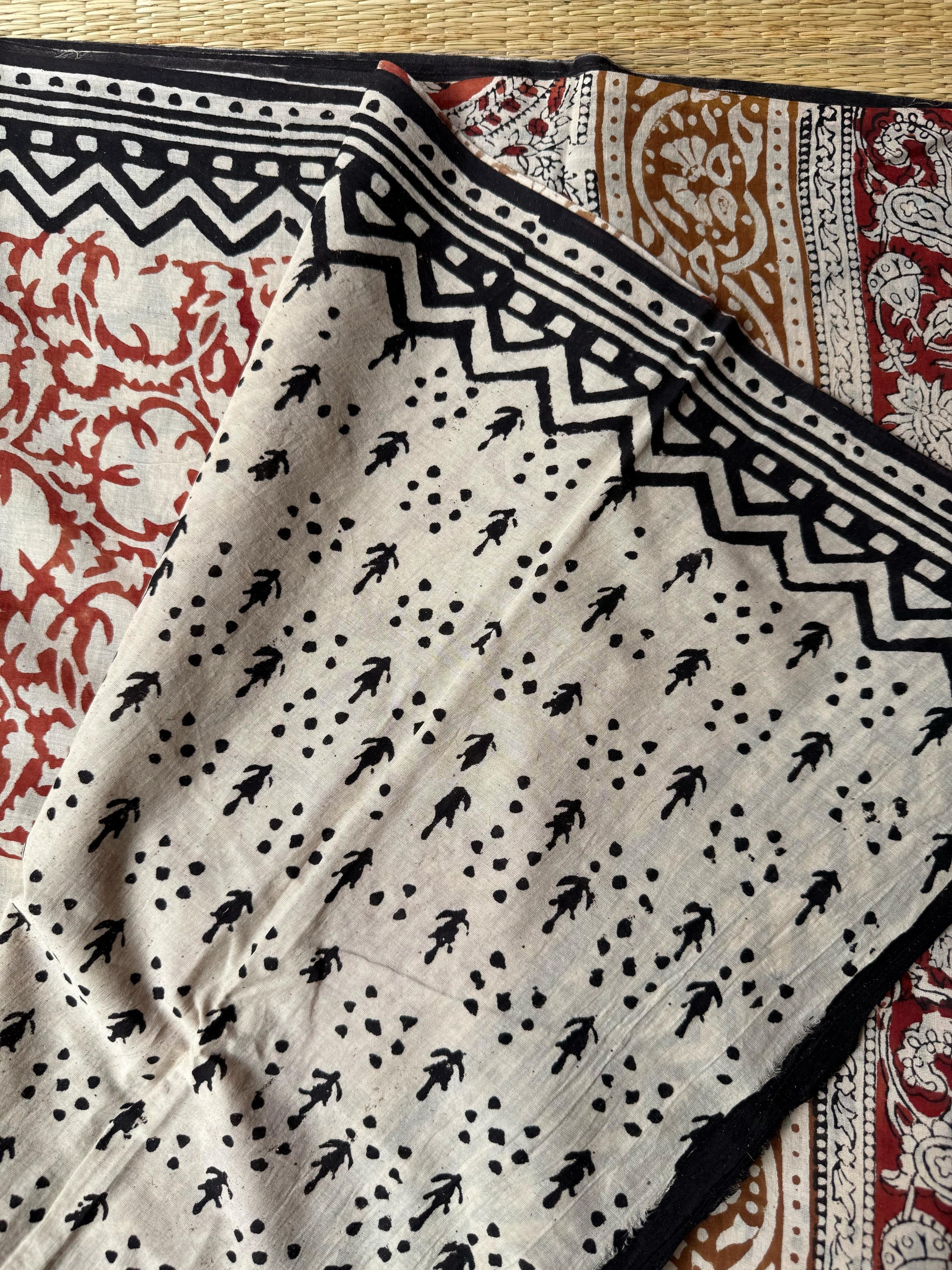 BH013 HANDBLOCK PRINTED MUMUL COTTON SAREE