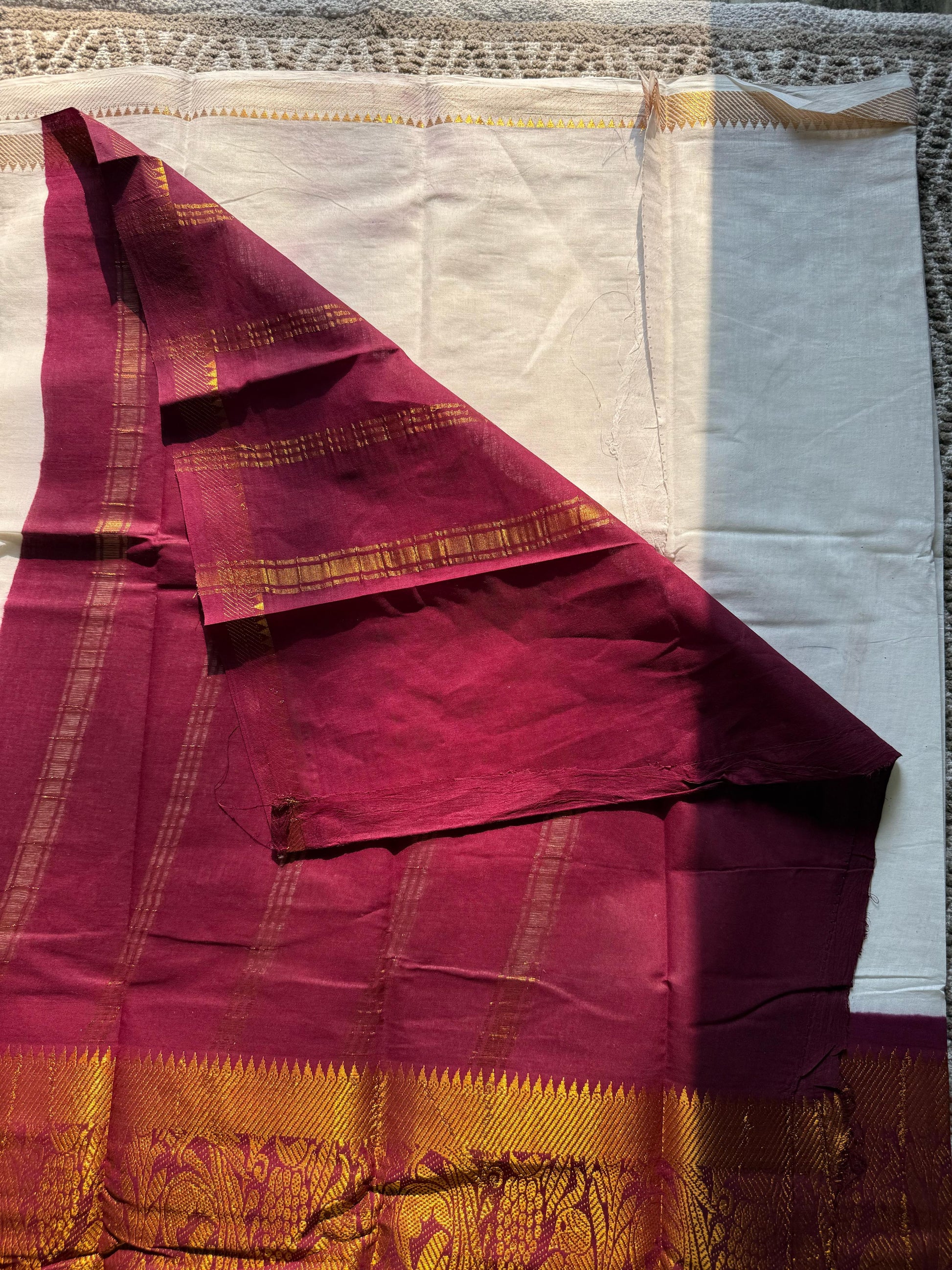 BH028 SUNGUDI COTTON SAREE (MAROON)