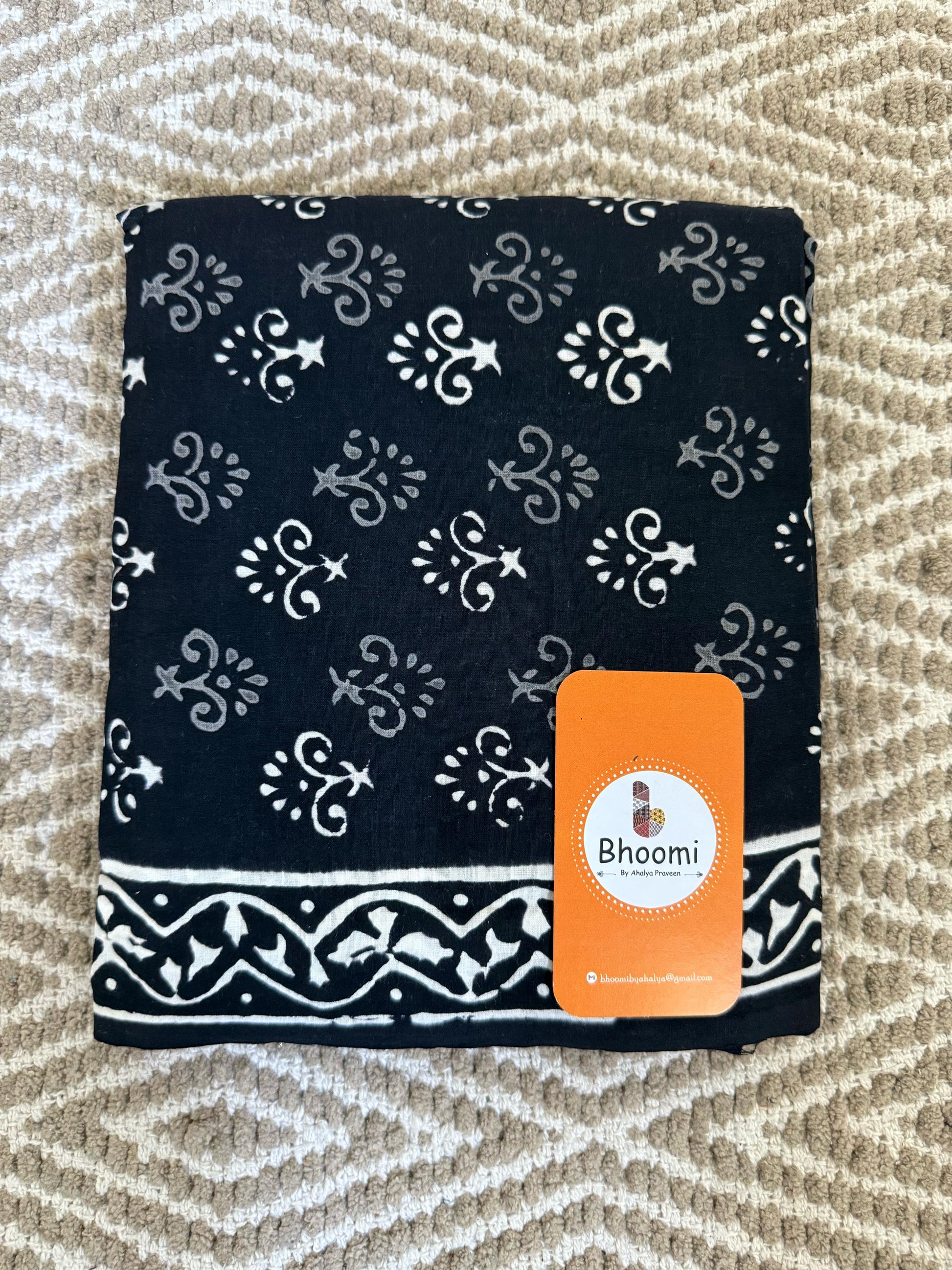 Fabric comes with hand block print using natural dye, though efforts have been made to avoid any defects, there might be slight imperfections in the pattern and colours are common in these sarees.