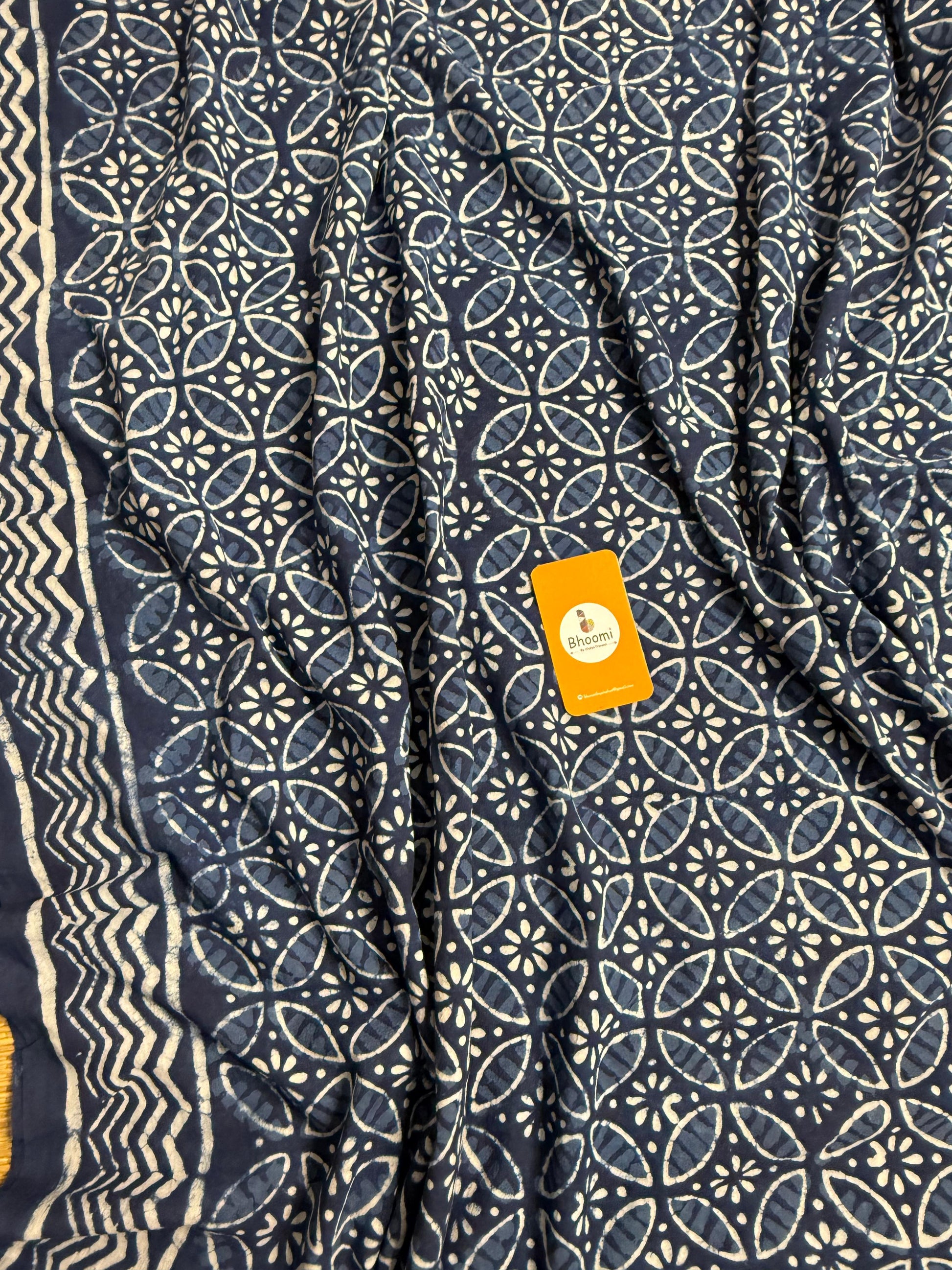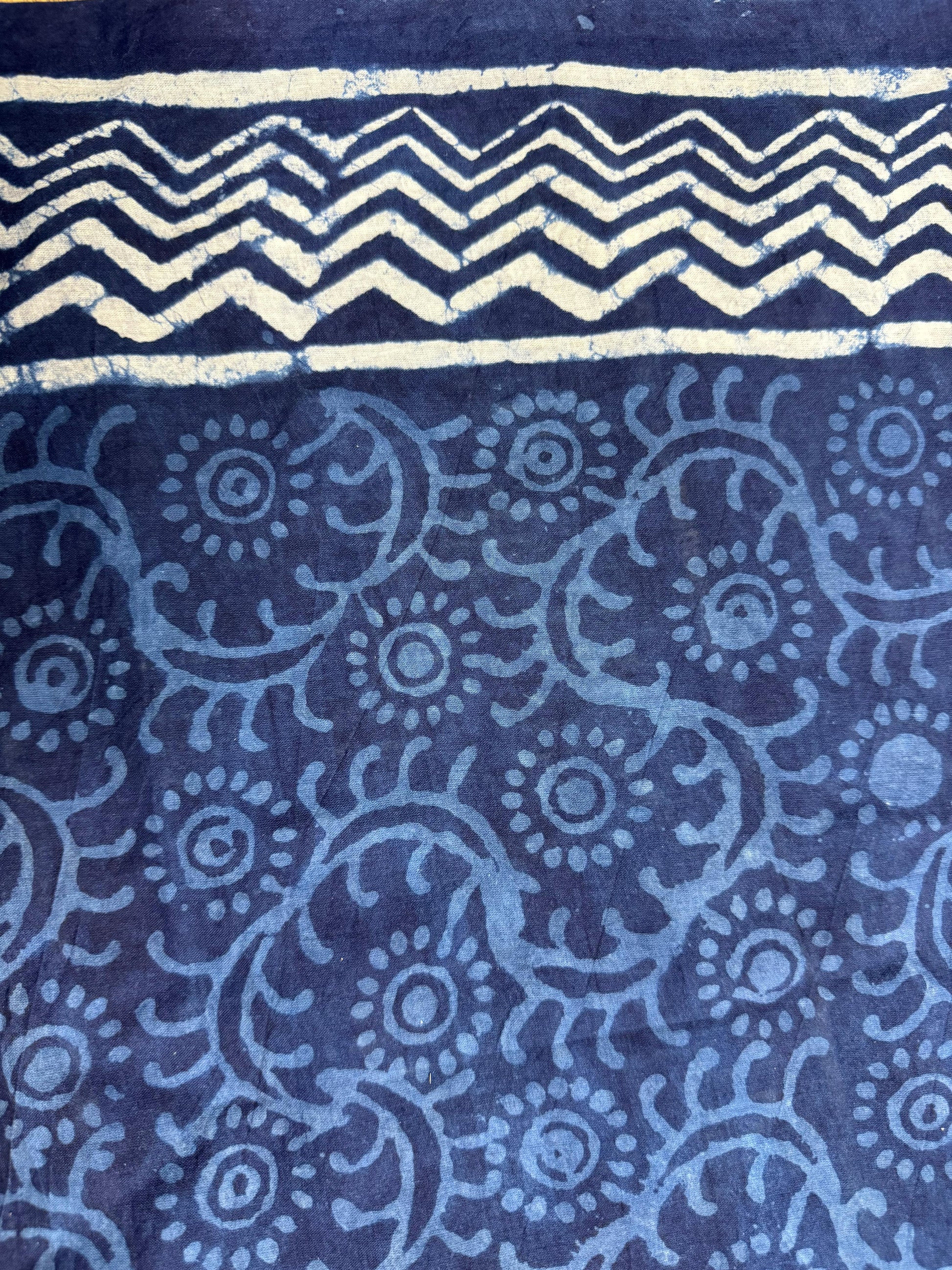 Sarees comes with hand block print using natural dye, though efforts have been made to avoid any defects,  there might be slight imperfections in the pattern and colours are common in these sarees.
