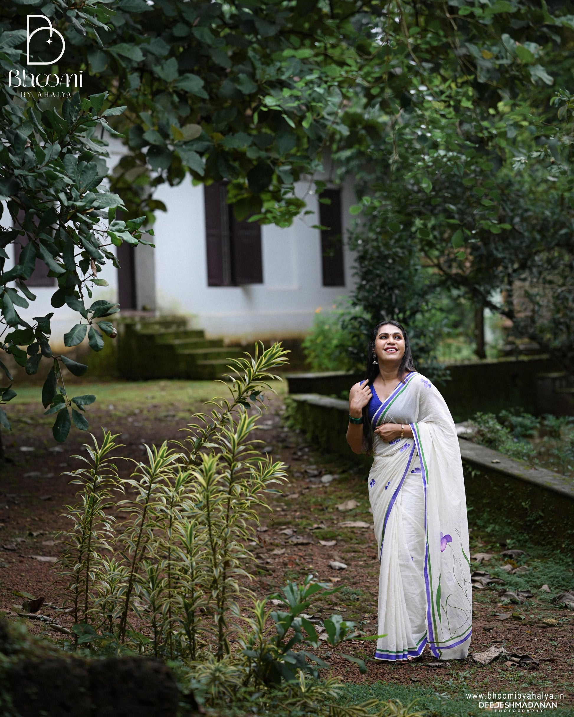 This elegant saree from our KAKKAPOOVU collection is a tribute to delicate craft — fully hand-painted, each stroke done with intention and care.