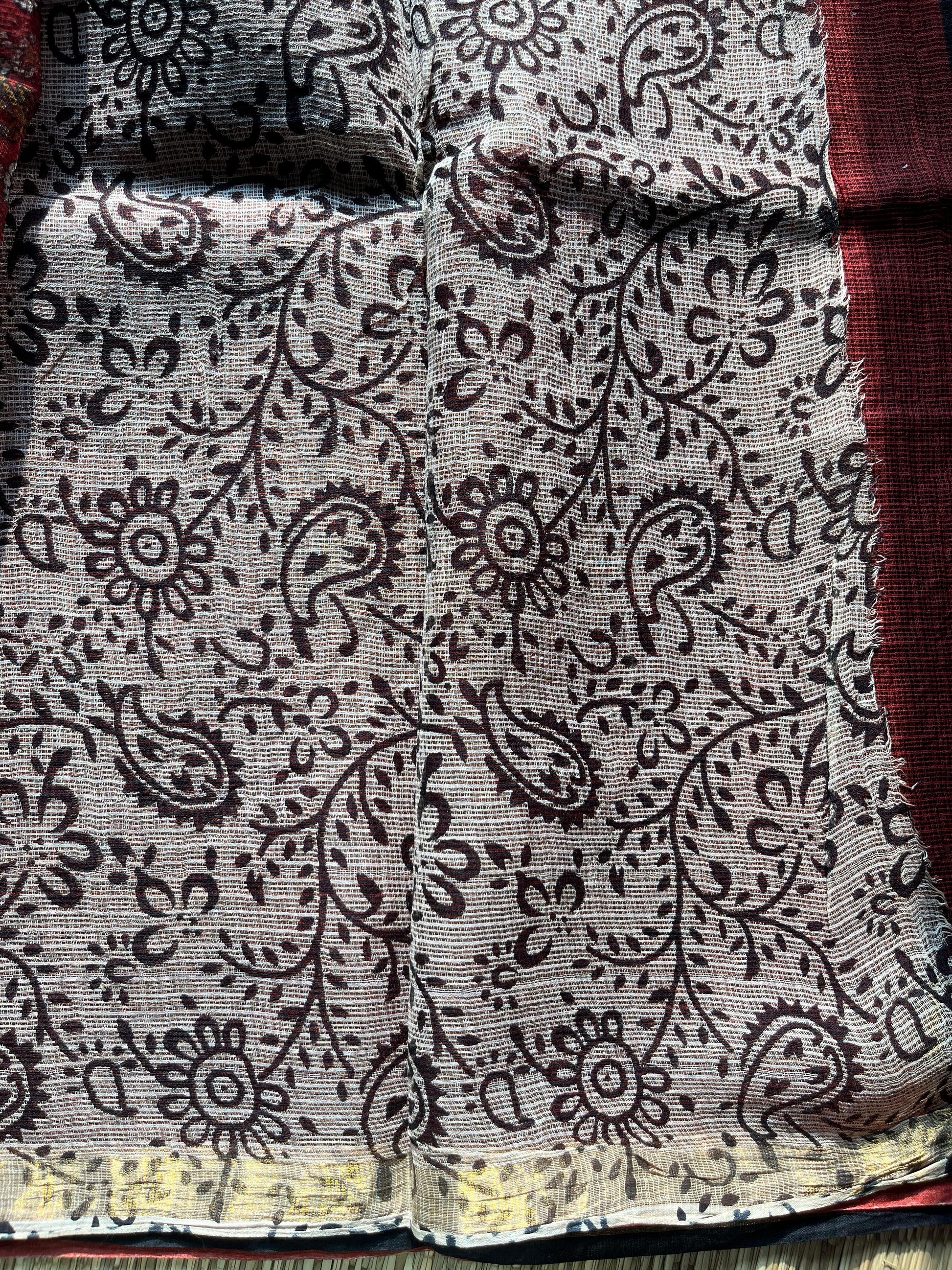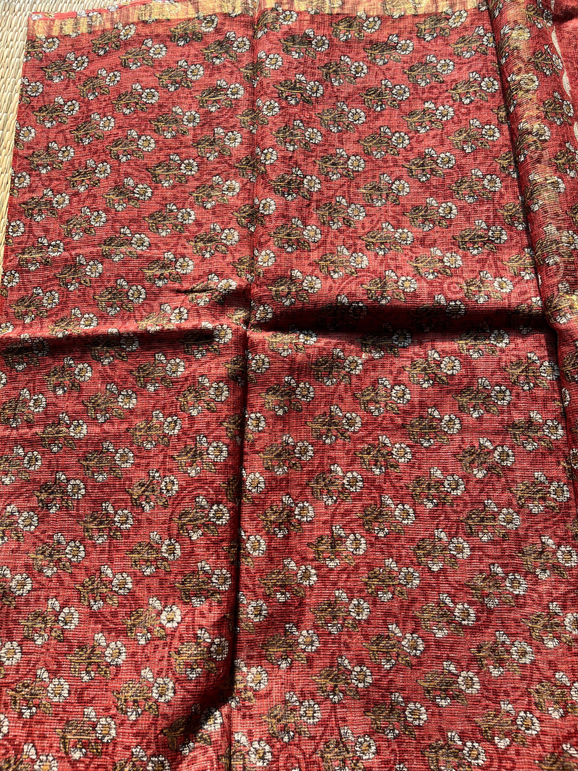 Sarees comes with hand block print using natural dye, though efforts have been made to avoid any defects, there might be slight imperfections in the pattern and colours are common in these sarees.