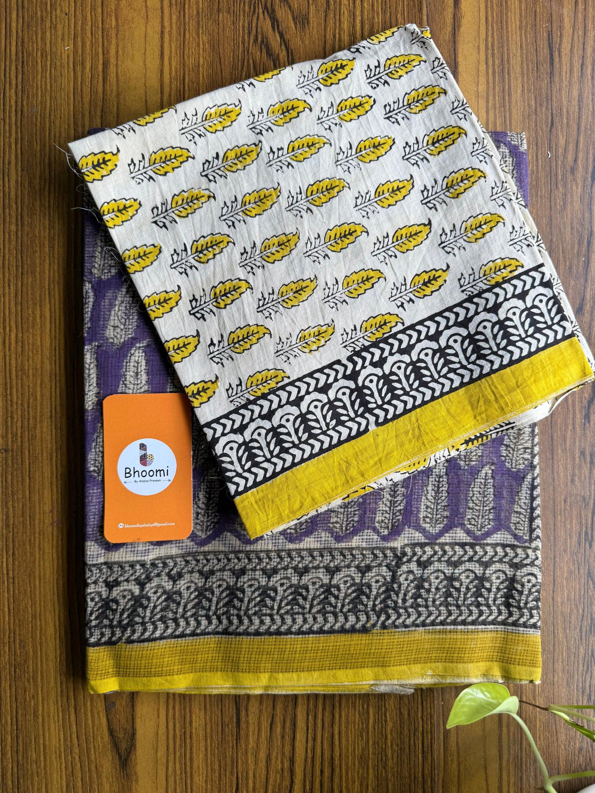 Sarees comes with hand block print using natural dye, though efforts have been made to avoid any defects, there might be slight imperfections in the pattern and colours are common in these sarees.