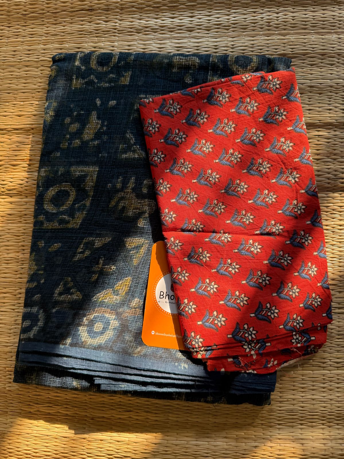 Sarees comes with hand block print using natural dye, though efforts have been made to avoid any defects, there might be slight imperfections in the pattern and colours are common in these sarees.