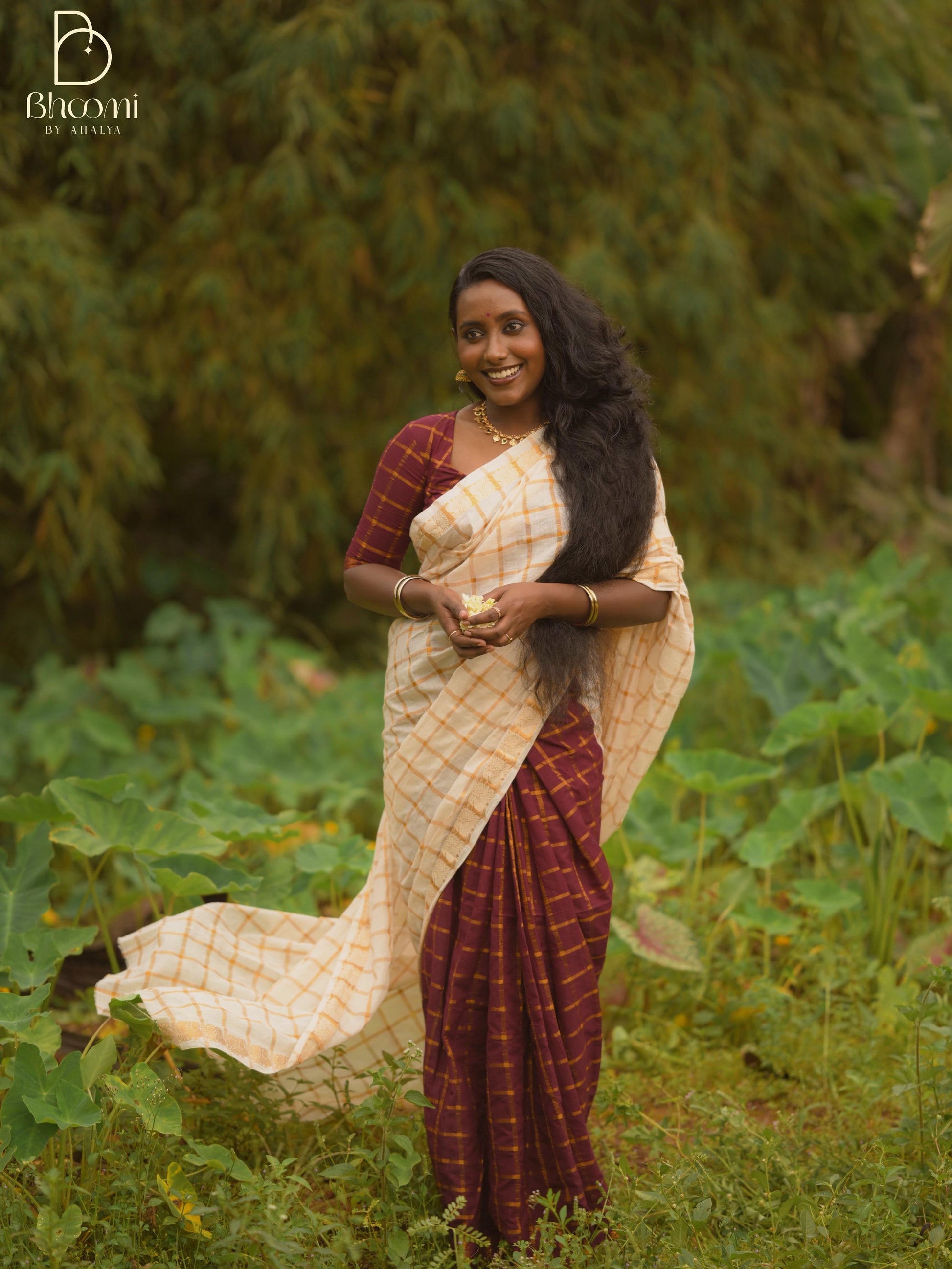 Here’s another beauty from our Madurai Malli collection a stunning half-and-half saree in Madurai Sungudi fabric, featuring the elegant Pavithra Kattam design.